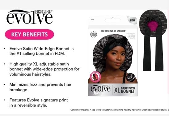 Protect natural and textured styles overnight with the new EvolveĀ® XL Take-Two Satin Wide Edge Bonnet. Designed for braids, locs, twist-outs, and rollers, this extra-large bonnet features a wide-edge band that helps protect edges and reduce tension.