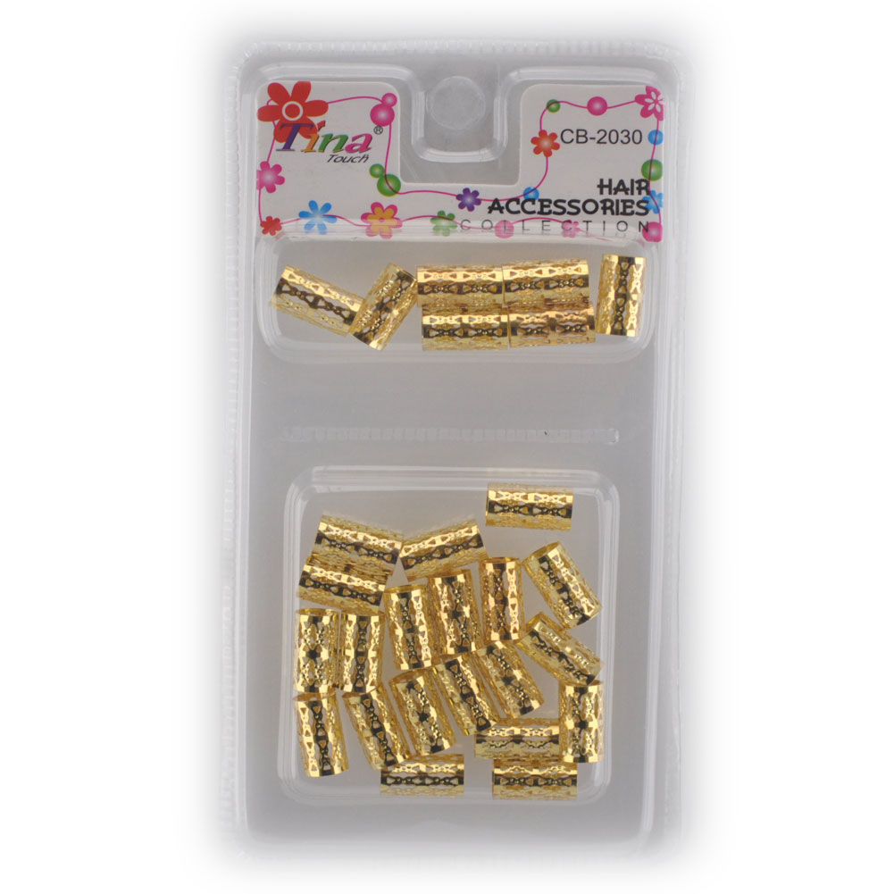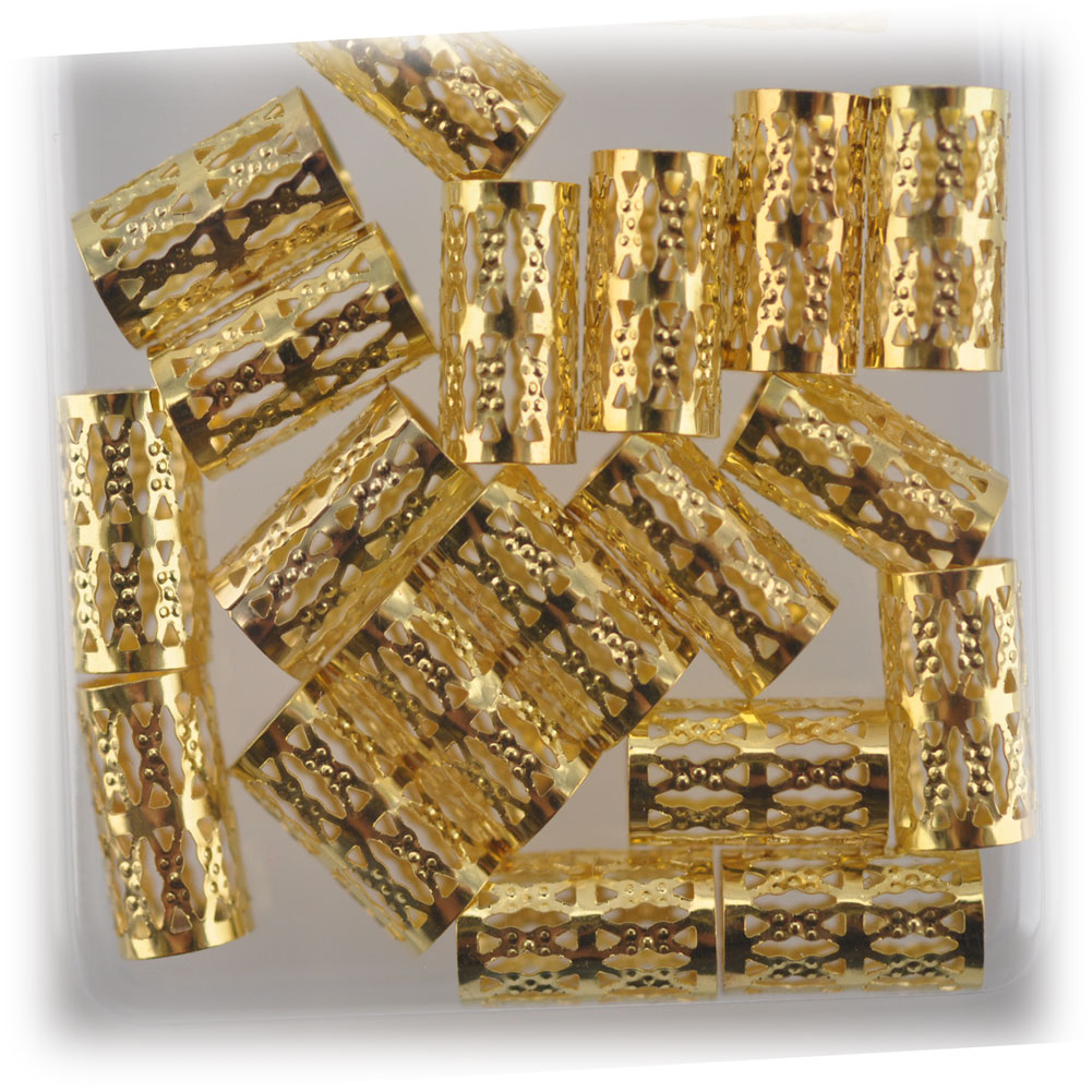 - Golden dreadlock Beads gold dread hair braid adjustable cuff tube clip (hair accessory).