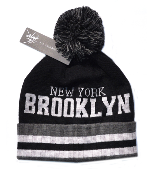 CITY NAME POM POM HAT W/STRIPE