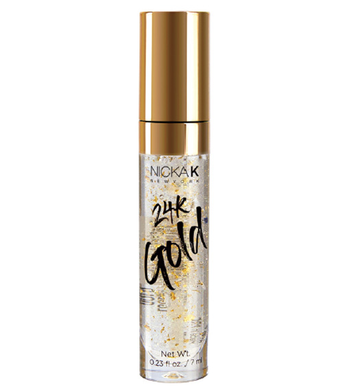 Nica K 24K Gloss is a mirror-shine gloss infused with 24K gold flakes and reflective shimmers.
