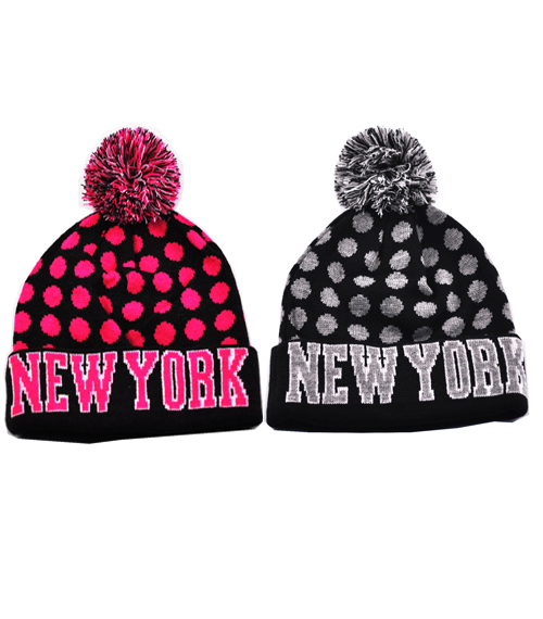 NEW YORK POM POM HAT with POLKA DOT
